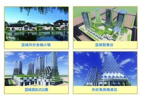 该项目共好西南金融服务区由八个板块组成:共好金融产品服务中心、进出口商品展示交易中心、国际健康医疗中心、蓝城共好金融小镇、蓝城智慧谷、高档办公楼、超五星级酒店、精品公寓、高端住宅以及商业配套为一体,建成后将成为中国西部规模最大、最专业、最宜居的金融主题小镇。这是近年来西南地区最大的金融总部投资项目。
